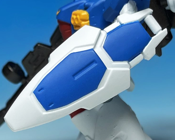 本体色のブルーとダブルガトリングガンのグリーンの色味の違いもしっかりと再現しております!