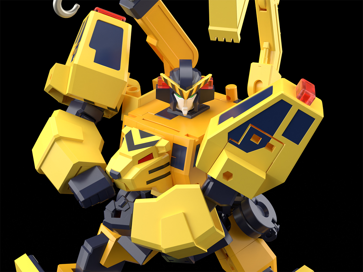 密度感のあるパワフルな後ろ姿。設定画に準じたコンパクトな形状のクレーン/ショベルが付属し、こちらも差し替えが可能となっています。